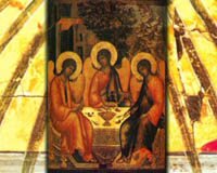 Свята Тр╕йця? Сюжет розкрива╓ сутн╕сть самого явлення Свято╖ Тр╕йц╕, яке сталося у п?ятдесятий день п╕сля воскрес╕ння Христового. Три особи ╓диного Бога являють себе у цей день. На апостол╕в сходить Бог Святий Дух, Якого посила╓ Бог Син ╕ Який походить в╕д Бога Отця.